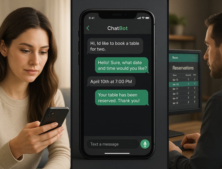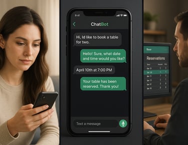 Asistente virtual que atiende reservas, pedidos o consultas de clientes de forma inmediata y disponible 24/7.